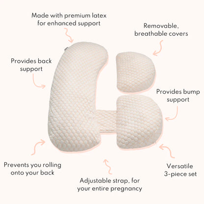 Our thoughtfully designed pregnancy pillow targets the real sources of nighttime discomfort—soothing hip pressure, easing lower back strain, and supporting pelvic alignment to help manage SPD pain, even as you shift positions.