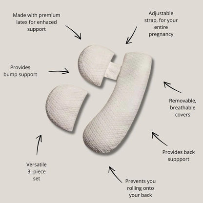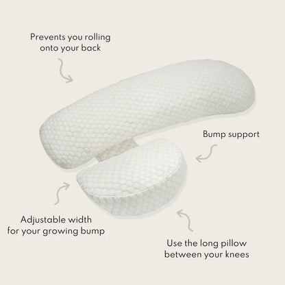 The adjustable design means the pregnancy pillow can be used for breastfeeding. To support you in the side-lying feeding position, or to support your bub while cradle-feeding, football-feeding and more !